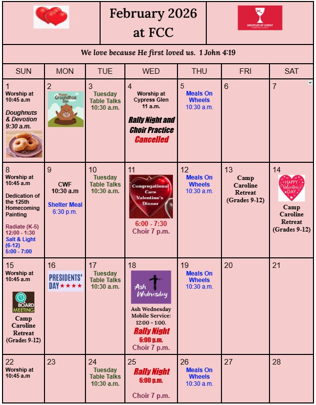 Sunday Worship will be conducted via Facebook Live at 10:45am each week. Click here to go directly to our Facebook videos